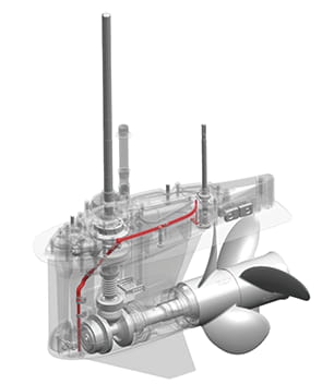 The Dual Prop system efficiently turns engine's output into propulsion under water.