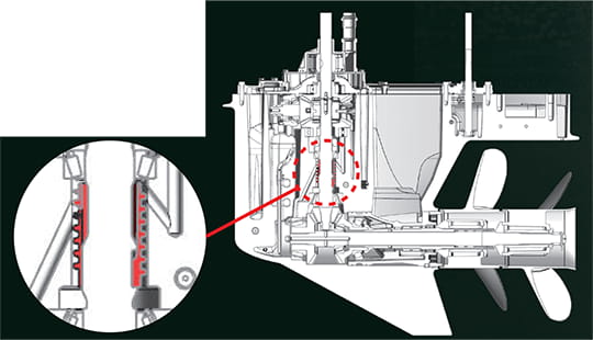 Lower unit including the advanced gear case is compatible with conventional DF350A/325A/300B. It is also installed as standard equipment for all GEKI models.